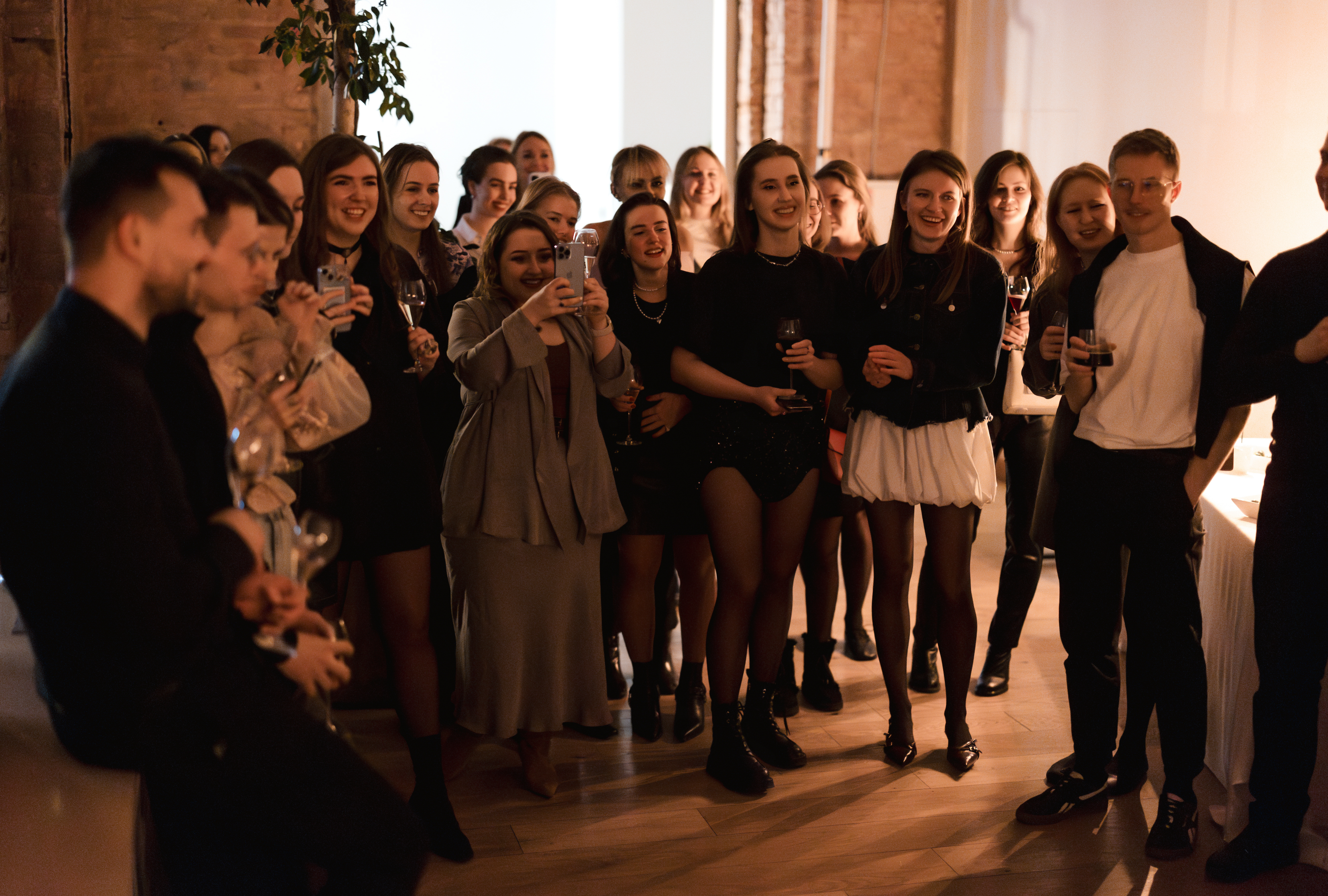 Вечером часть пространства офиса была скрыта занавесом, а у входа нас встретил элегантно накрытый стол с напитками. Когда все собрались, ребята сказали тёплые слова и поздравили нас.